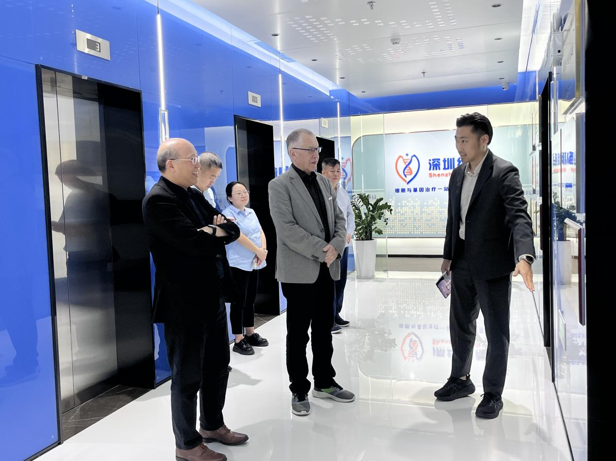 On November 10, Professor Rupert Josef Handgretinger, an internationally renowned pediatric oncology expert, member of the German Academy of Sciences, and former director of the Children's Hospital of Tübingen University, along with Professor Chen Zhifeng, former director of the Department of Hematology at Hong Kong Children's Hospital, honorary clinical professor of the Department of Child and Adolescent Sciences at the University of Hong Kong's Faculty of Clinical Medicine, and consultant physician at the University of Hong Kong, visited Shenzhen Cell Valley for an exchange. The visit was warmly received by Professor Shi Yuanyuan, Chairman of Cell Valley, Professor Wang Jianxun, Chief Scientist, Vice President Tang Xiaomeng, Dr. Fu Yuchen, Assistant to the Chairman, Dr. Feng Yaru, Director of Production, Dr. Zhang Xuefeng, Director of Quality Management, Dr. Zhao Lijun, Head of the R&D Department, and Dr. Zhu Wenxiang, Senior R&D Scientist. Both parties engaged in in-depth discussions on international collaboration in the field of cell and gene therapy, exploring the global application of cell therapy.